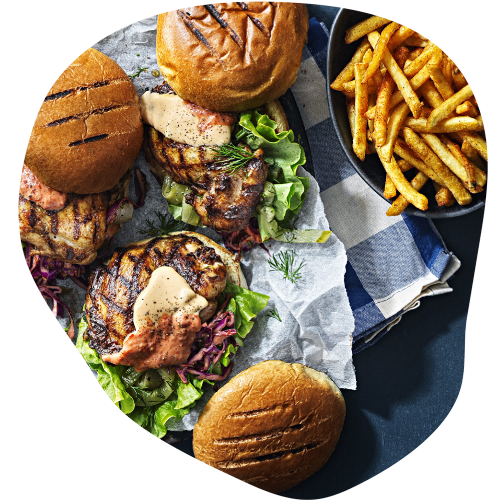 Kronfågels Kycklingsteak är helt enkelt en urbenad klubba med skinn – perfekt mellan två bröd. Fettet i skinnet och de saftiga kycklingköttet är suverän på grillen. Precis som vid grillning av lårfilé så är Kycklingsteaken inte känslig för att råka grillas för länge. Se till att alltid grilla kyckling utan ben till 70 graders innertemperatur för ultimat resultat.