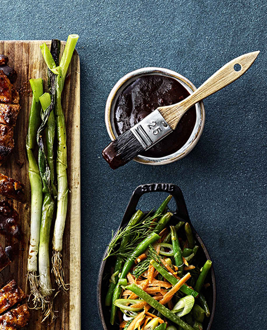 Glaze är en ganska söt vätska som penslas på under slutet av grillningen. Glazen ger en glansig och karamelliserad yta. Du kan även använda grillolja som antingen som marinad eller glaze.