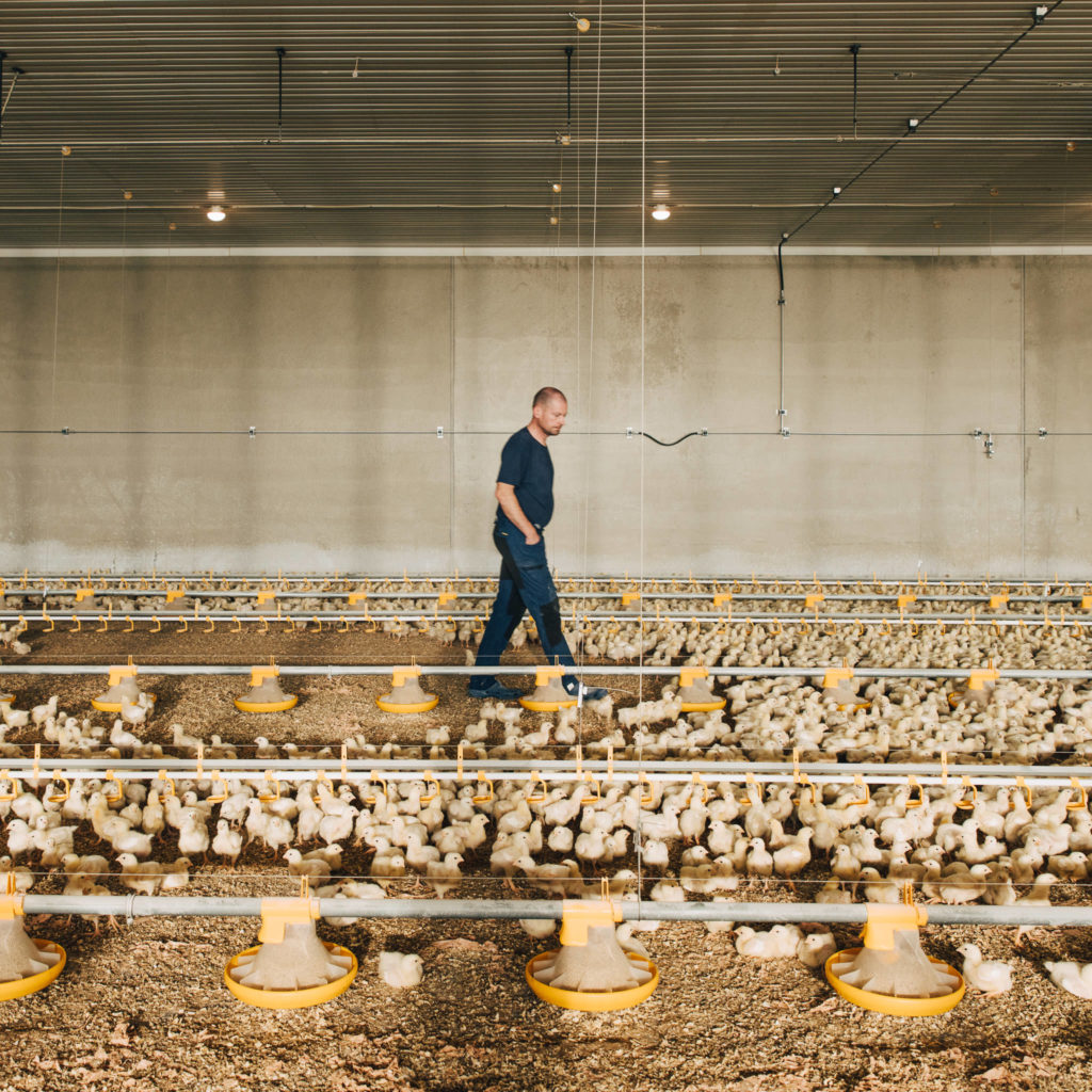 Kronfågel har cirka 50 kontrakterade kycklinguppfödare vars arbete och engagemang är det absolut viktigaste för att kycklingarna ska må bra. Att god djuromsorg genomsyrar hela värdekedjan är av högsta prioritet för oss.