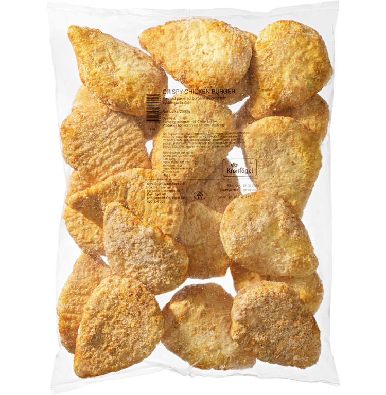 Frasig och god burgare som gör sig lika bra i ett hamburgerbröd som tillsammans med potatis eller sallad. Tillverkad av svensk bröstfilé av bästa kvalitet. Kan tillagas både fryst och tinad. Utmärkt resultat i fritös.