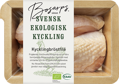 Ekologisk kycklingbröstfilé från Kronfågel är den ädlaste delen på kycklingen. Med sin milda smak lämpar den sig för att marineras och kryddas efter alla smaker. Kycklingbröstfilén kan stekas i panna eller ugn för att enkelt serveras med potatisgratäng, pasta, eller bara en fräsch sallad. Bosarpkyckling® är ekologisk kyckling uppfödd med KRAV-märkt foder på våra småskaliga, svenska gårdar, som eftersträvar den naturliga utomhusmiljön för djuren.