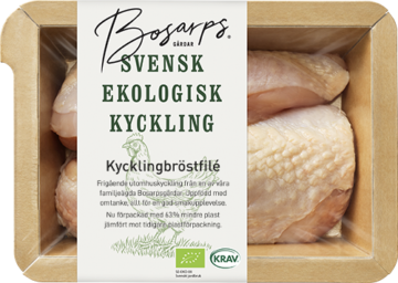 Ekologisk kycklingbröstfilé från Kronfågel är den ädlaste delen på kycklingen. Med sin milda smak lämpar den sig för att marineras och kryddas efter alla smaker. Kycklingbröstfilén kan stekas i panna eller ugn för att enkelt serveras med potatisgratäng, pasta, eller bara en fräsch sallad. Bosarpkyckling® är ekologisk kyckling uppfödd med KRAV-märkt foder på våra småskaliga, svenska gårdar, som eftersträvar den naturliga utomhusmiljön för djuren.