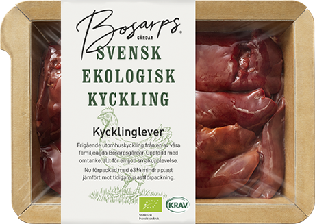 Ekologisk kycklinglever från Kronfågel har en mild fin smak, passar utmärkt som bas i pastejer, patéer och i grytor med bacon och svamp. Kycklinglever kan även stekas för att serveras varm eller ljummen i en fräsch sallad. Bosarpkyckling® är ekologisk kyckling uppfödd med KRAV-märkt foder på våra småskaliga, svenska gårdar, som eftersträvar den naturliga utomhusmiljön för djuren.