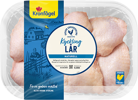 Saftiga kycklinglår med skinn och ben från Kronfågel är goda att steka eller grilla. Krydda med salt och peppar eller din egen favoritkrydda. Passar perfekt till en buffé, pasta eller sallad. Kycklingen kan också värmas och serveras med goda såser och valfria tillbehör. Alltid svensk kyckling för en godare måltid.