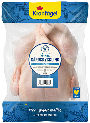 Hel Gårdskyckling från Kronfågel har en härlig smak, ett populärt val till grytor och annan basmat. Kycklingen levereras utan inkråm. Den är luftkyld vilket ger en förhöjd smakupplevelse i varje rätt. Gårdskyckling kan stekas hel eller i halvor och serveras med valfria tillbehör. Alltid svensk kyckling för en godare måltid.