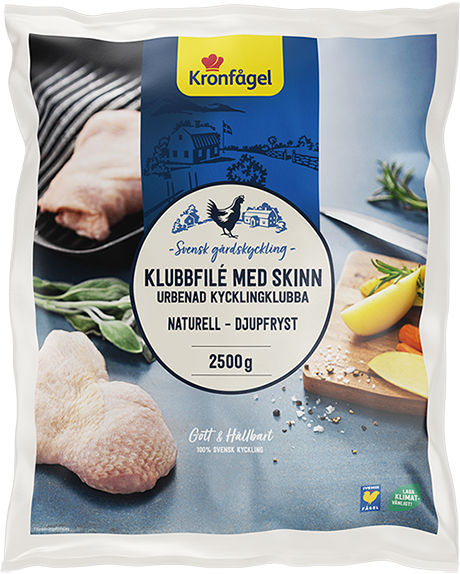 Klubbfilé med skinn – Årets Foodservicevara 2019, nu också fryst. En stor och saftig kycklingbit med mycket smak. Tillagas lika lätt på grillen som på stekbord eller ugn.