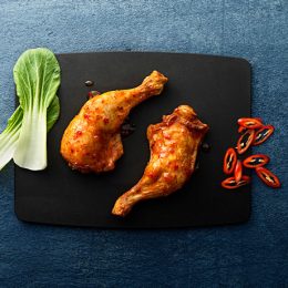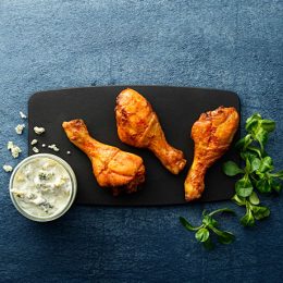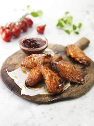 Kycklingben 89%, vatten, salt, paprika, socker, tomat, kryddor (spiskummin, vitlök, rosmarin, svartpeppar), modifierad potatisstärkelse.