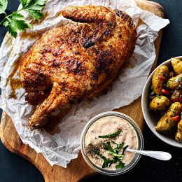 KycklingSteak California med gurk och avokadosallad och grillad majs