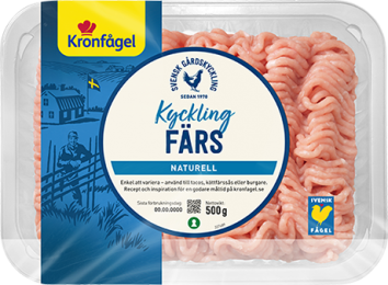 Kycklingfärs från Kronfågel tillagas på samma sätt som annan färs och dessutom är den ett hälsosamt val för dig. Den passar utmärkt till familjens alla favoriter- tacos, kycklingköttbullar och kycklingburgare. Alltid svensk kyckling för en godare måltid.