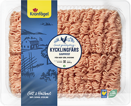 Succén från dagligvaruhandeln och Foodservice finns nu i en storköksförpackning på 2000 g. Kycklingfärs passar utmärkt att använda som alternativ till traditionella färsrätter såsom köttfärssås, tacos, köttbullar m.m.
