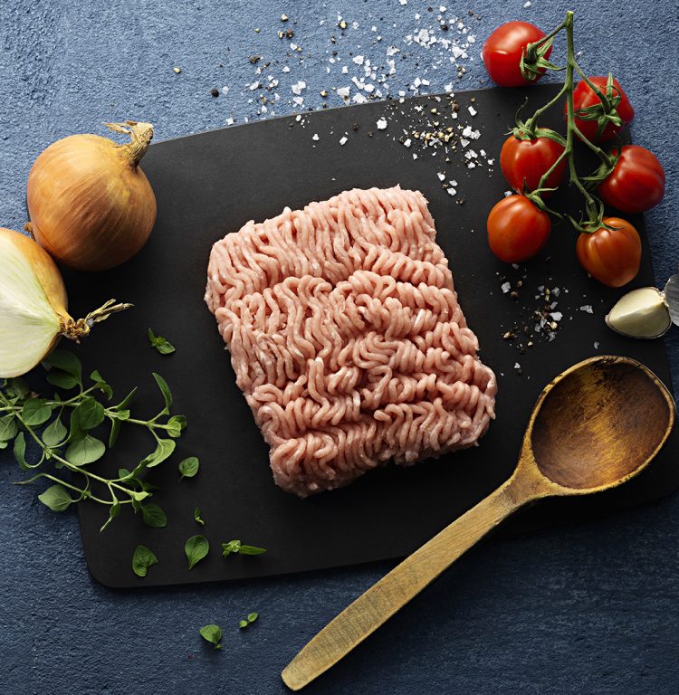Kycklingfärs kan användas till allt från lasagne och köttfärssås till tacos och burgare. Färsen ska vara genomstekt vid avsmakning.