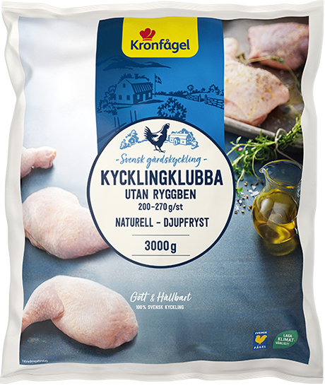 Kycklingklubba, 200–270 g/st. Anatomisk utan ryggben. Klass A. Styckfryst.