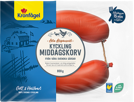 Kycklingmiddagskorv 800g är hel ring av falutyp, gjord på 100% svensk kyckling. Middagskorven har en klassisk smaksättning och är en god och omtyckt vardagskorv. Perfekt för den stora familjen!