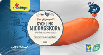 Kycklingmiddagskorv 800g är hel ring av falutyp, gjord på 100% svensk kyckling. Middagskorven har en klassisk smaksättning och är en god och omtyckt vardagskorv. Perfekt för den stora familjen!