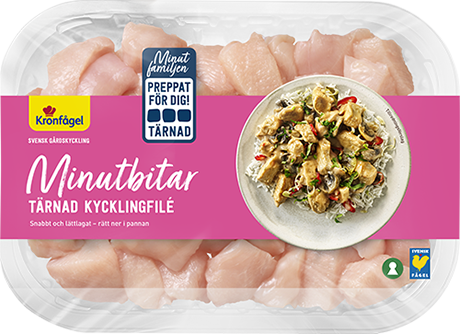 Minutbitar från Kronfågel är tärnad kycklingbröstfilé, den ädlaste delen på kycklingen. Med sin milda smak lämpar den sig för att marineras och kryddas i det oändliga. Minutbitar kan snabbt och enkelt stekas i panna. Servera gärna med nykokt pasta, en god sås och en fräsch grönsallad. Alltid svensk kyckling för en godare måltid.