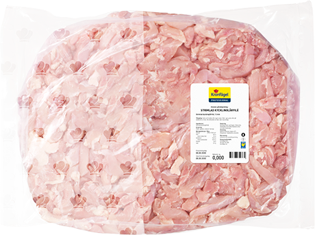 Strimlad kyld, gårdsmärkt lårfilé med strimlingsstorlek 12 mm. Snabbt, bekvämt och lätt! Fettsnål kvalitetsprodukt med ett brett användningsområde. Passar utmärkt till moderna rätter såsom wok, wraps, sallader, taco/tortillas, omelett, paj och pasta.