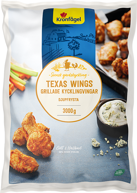 Texas Wings är kryddade och färdiggrillade kycklingvingar, perfekta på buffén eller som fingerfood. Eftersom de är både enkla att värma och portionera spar du tid i köket!