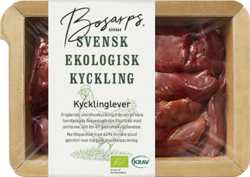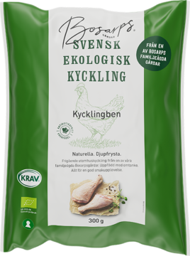 Våra ekologiska produkter kommer alltid från en av våra mindre Bosarpgårdar. Dessa kycklingar har tillgång till utevistelse och växer långsamt i samklang med naturen.