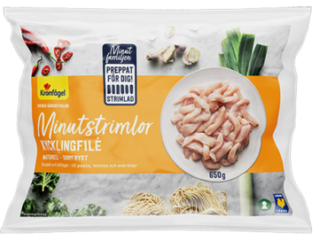 Minutfamiljen från Kronfågel är kyckling preppad för dig! Kyckling i strimlor, bitar eller bankad - rakt ner i pannan. Framtagen för att underlätta och spara tid. Olika kycklingdetaljer för olika smakupplevelser.