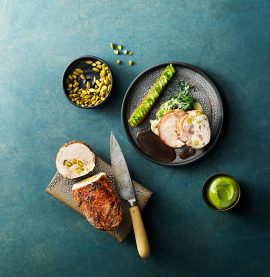 Kycklingballotine med lökkräm och pistagenötter