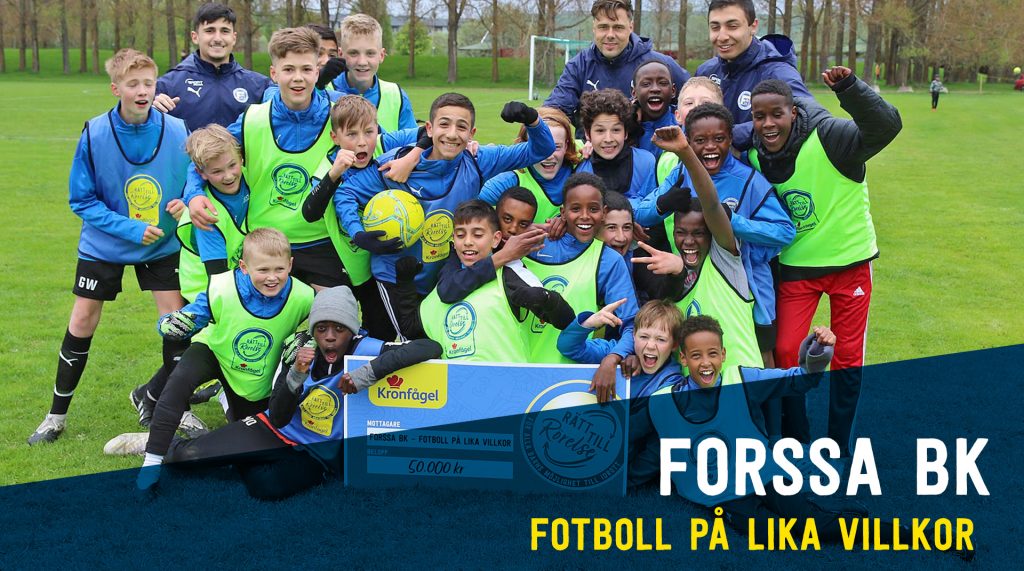 Rätt till rörelse stöttar Forssa Bollklubb som med projektet ”Fotboll på lika villkor” ger barn möjlighet att spela fotboll och ha en meningsfull fritid – oavsett bakgrund och förutsättningar. För att alla ska kunna vara med är all verksamhet gratis för barn upp till 15 år. För de över 15 år tar föreningen ut en avgift som går att arbeta av genom att t ex hjälpa till på matcher eller döma matcher för de yngre barnen.