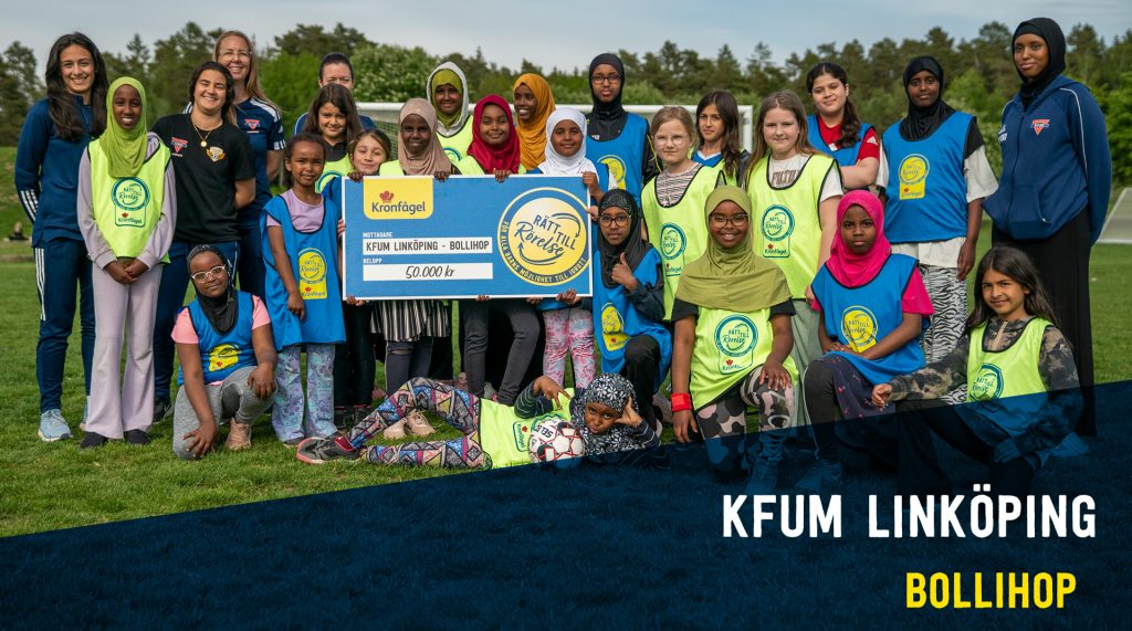 Rätt till rörelse stöttar KFUM Linköping som jobbar för att sänka trösklarna och öppna upp föreningslivet för alla fler. Detta genom att ge tjejer i socioekonomiskt utsatta områden ett sammanhang och en trygg plats där fysisk aktivitet och glädje är i fokus och där det finns trygga vuxna.
