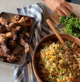 Kycklinglårfilé ”New Orleans” med rice and beans och grillade grönsaksspett