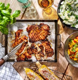 KycklingSteak California med gurk och avokadosallad och grillad majs