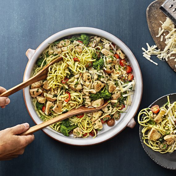 Kycklingsallad med rostad pumpa, kikärtor och soltorkad tomat