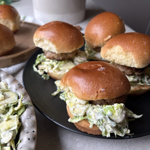Kycklingfärssliders med brysselkålsslaw