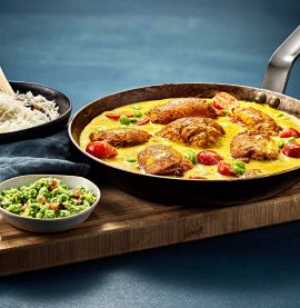 Currybakad Bosarpkyckling med vildris och naanbröd
