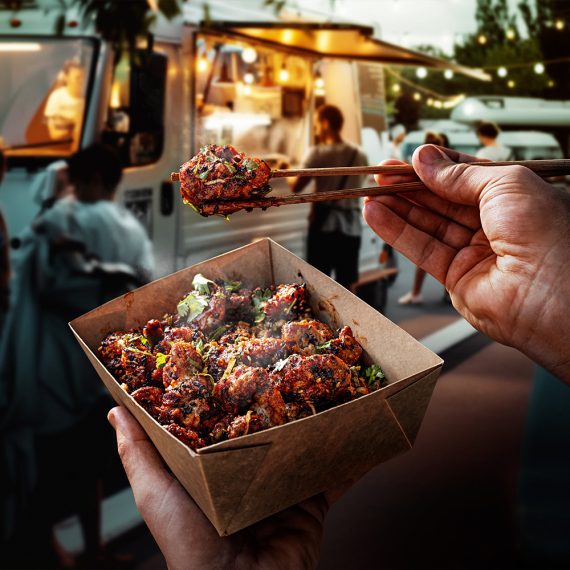 Krispig strimlad Kycklingfilé med gochujang, pak choi och ris