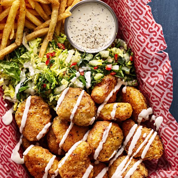 Spicy Chicken Nuggets i korvbröd och gurkrelish
